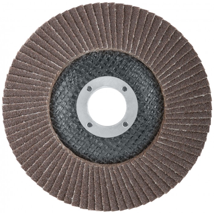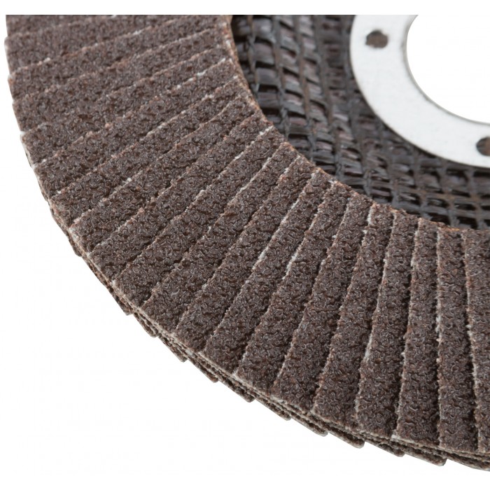 При изготовлении используется высококачественный гибкий абразивный материал состоящий из тканевой основы на которую нанесен слой кальцинированного оксида алюминия. Данный абразив имеет более твердые частицы, чем обычный оксид алюминия - Корунд, что позволяет увеличить скорость обрабатываемой поверхности до пяти раз. Наполняемость диска составляет 80/96 лепестков с углом наклона 10 градусов, что позволяет увеличить КПД круга и его стойкость к износу в несколько раз. Предназначен для обработки металла и нержавеющей стали. Для углошлифовальных машин. Посадочный диаметр 22,2мм.