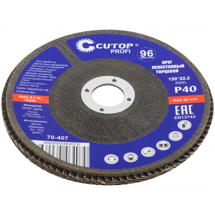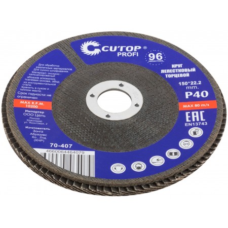 Круг лепестковый торцевой Cutop Profi (96 лепестков) 150 х 22,2 мм, Р40 (70-407)