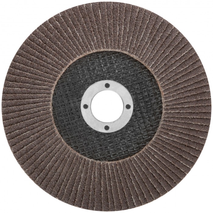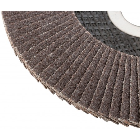 При изготовлении используется высококачественный гибкий абразивный материал состоящий из тканевой основы на которую нанесен слой кальцинированного оксида алюминия. Данный абразив имеет более твердые частицы, чем обычный оксид алюминия - Корунд, что позволяет увеличить скорость обрабатываемой поверхности до пяти раз. Наполняемость диска составляет 80/96 лепестков с углом наклона 10 градусов, что позволяет увеличить КПД круга и его стойкость к износу в несколько раз. Предназначен для обработки металла и нержавеющей стали. Для углошлифовальных машин. Посадочный диаметр 22,2мм.