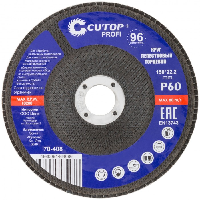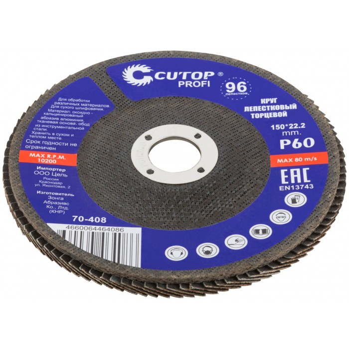 Круг лепестковый торцевой Cutop Profi (96 лепестков) 150 х 22,2 мм, Р60 (70-408)