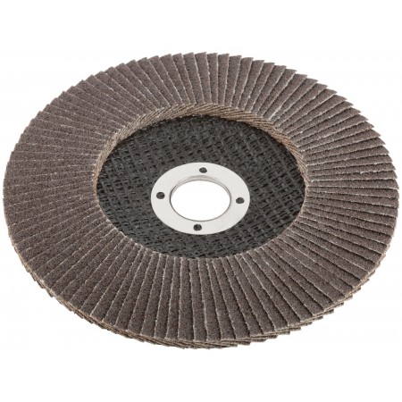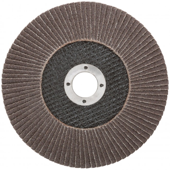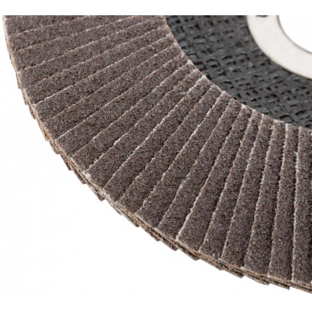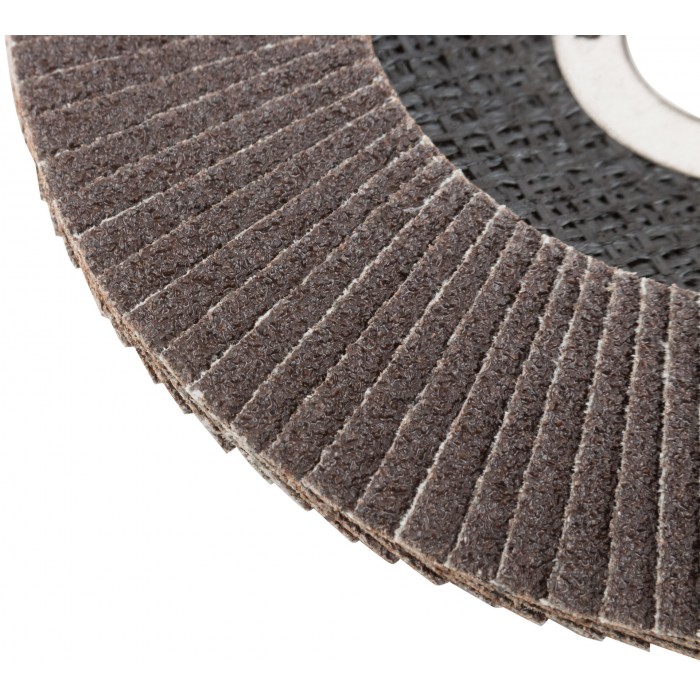 При изготовлении используется высококачественный гибкий абразивный материал состоящий из тканевой основы на которую нанесен слой кальцинированного оксида алюминия. Данный абразив имеет более твердые частицы, чем обычный оксид алюминия - Корунд, что позволяет увеличить скорость обрабатываемой поверхности до пяти раз. Наполняемость диска составляет 80/96 лепестков с углом наклона 10 градусов, что позволяет увеличить КПД круга и его стойкость к износу в несколько раз. Предназначен для обработки металла и нержавеющей стали. Для углошлифовальных машин. Посадочный диаметр 22,2мм.