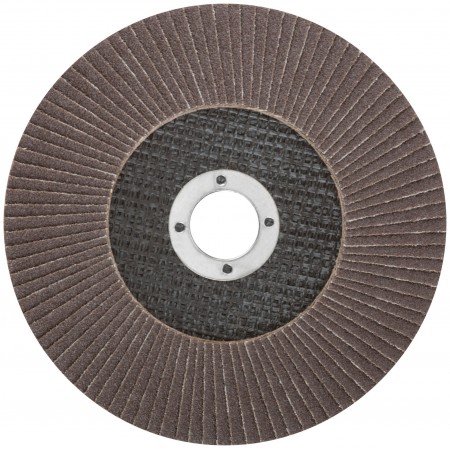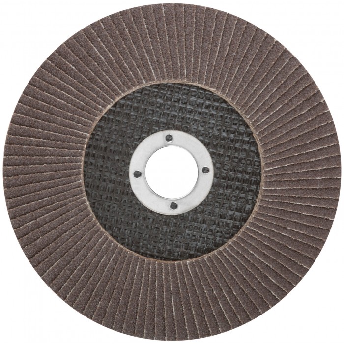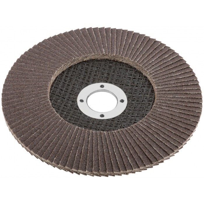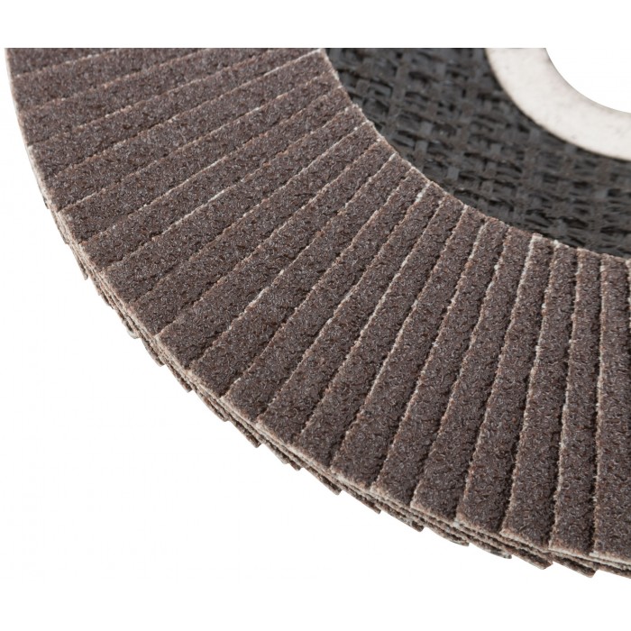 При изготовлении используется высококачественный гибкий абразивный материал состоящий из тканевой основы на которую нанесен слой кальцинированного оксида алюминия. Данный абразив имеет более твердые частицы, чем обычный оксид алюминия - Корунд, что позволяет увеличить скорость обрабатываемой поверхности до пяти раз. Наполняемость диска составляет 80/96 лепестков с углом наклона 10 градусов, что позволяет увеличить КПД круга и его стойкость к износу в несколько раз. Предназначен для обработки металла и нержавеющей стали. Для углошлифовальных машин. Посадочный диаметр 22,2мм.