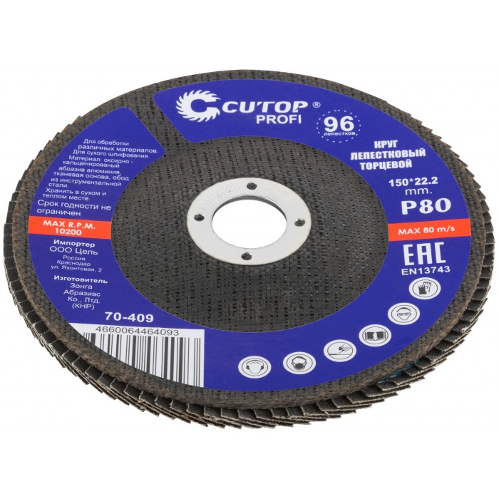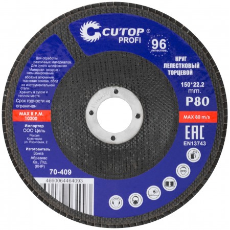 Круг лепестковый торцевой Cutop Profi (96 лепестков) 150 х 22,2 мм, Р80 (70-409)