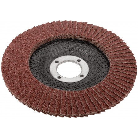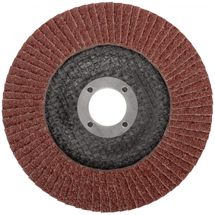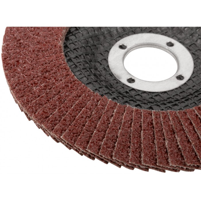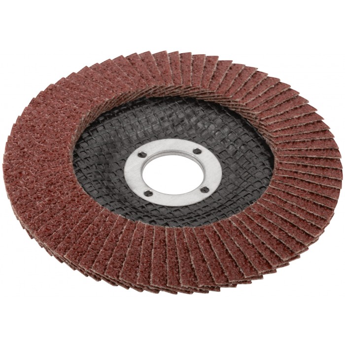 Предназначен для УШМ, посадка 22,23мм. Наполняемость круга 72 лепестка (25х15мм) с углом наклона 10 градусов, что позволяет увеличить площадь контакта с поверхностью. Используется для обработки различных поверхностей: металл, дерево, пластик. Материал: инструментальная сталь, тканевая основа, абразивный материал.