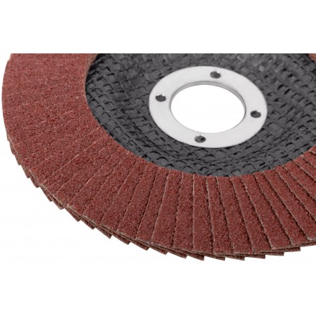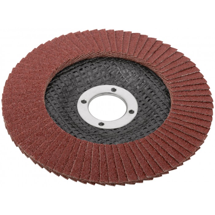 Предназначен для УШМ, посадка 22,23мм. Наполняемость круга 72 лепестка (25х15мм) с углом наклона 10 градусов, что позволяет увеличить площадь контакта с поверхностью. Используется для обработки различных поверхностей: металл, дерево, пластик. Материал: инструментальная сталь, тканевая основа, абразивный материал.