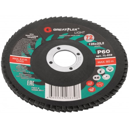 Круг лепестковый торцевой GreatFlex Light (72 лепестка) 125 х 22,2 мм, P60 (71-839)