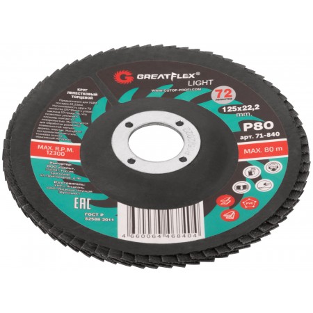 Круг лепестковый торцевой GreatFlex Light (72 лепестка) 125 х 22,2 мм, P80 (71-840)
