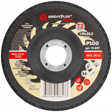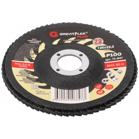 Круг лепестковый торцевой GreatFlex Plus (72 лепестка) 125 х 22,2 мм, P100 (71-847)