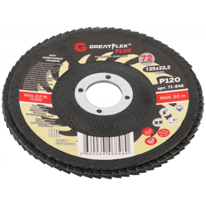 Круг лепестковый торцевой GreatFlex Plus (72 лепестка) 125 х 22,2 мм, P120 (71-848)