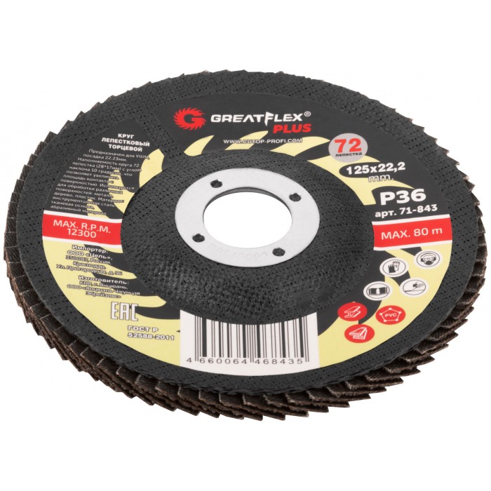 Круг лепестковый торцевой GreatFlex Plus (72 лепестка) 125 х 22,2 мм, P36 (71-843)