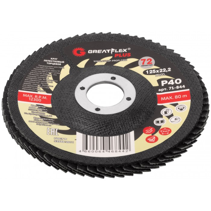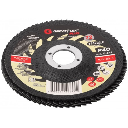Круг лепестковый торцевой GreatFlex Plus (72 лепестка) 125 х 22,2 мм, P40 (71-844)