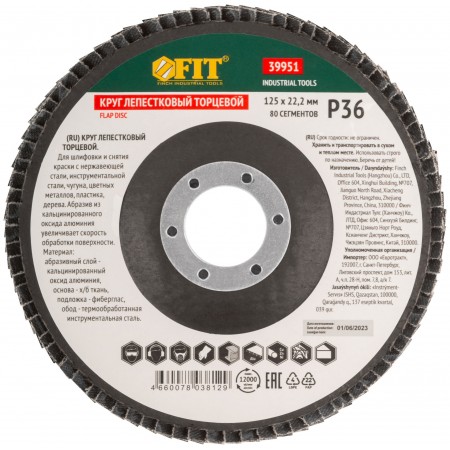 Круг лепестковый торцевой кальцинированный, 125 мм Р 36 (39951)