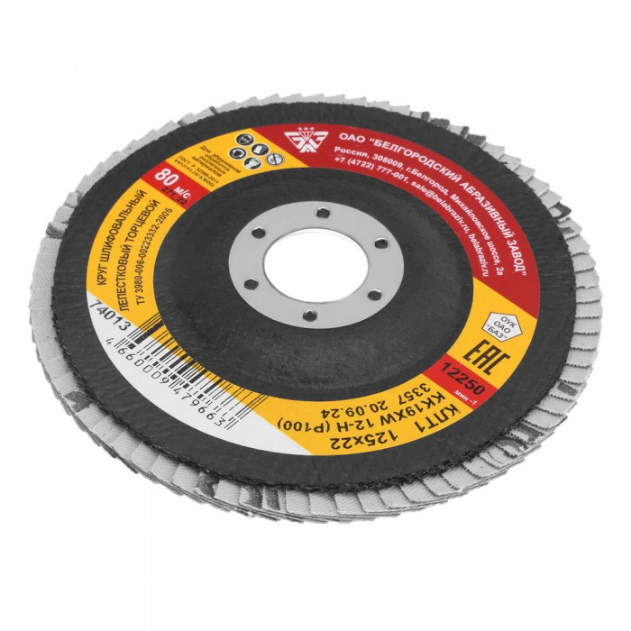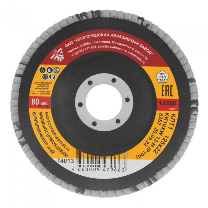 Круг лепестковый торцевой КЛТ-1, зернистость P 100(12Н) 125 х 22.2 мм, "БАЗ" (74013)
