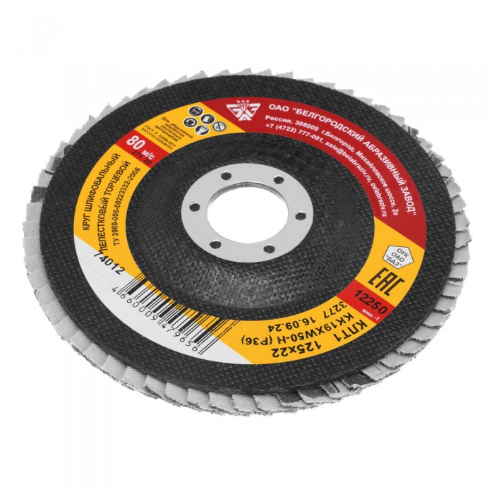 Круг лепестковый торцевой КЛТ-1, зернистость P 36(50Н) 125 х 22.2 мм, "БАЗ" (74012)