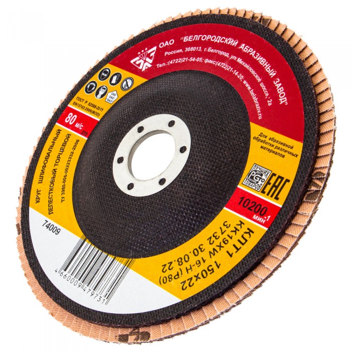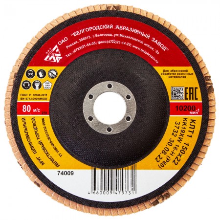Круг лепестковый торцевой КЛТ-1, зернистость Р 80(16Н) 150 х 22.2 мм, "БАЗ" (74009)