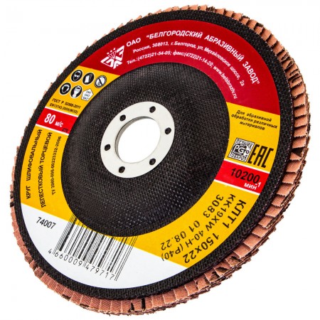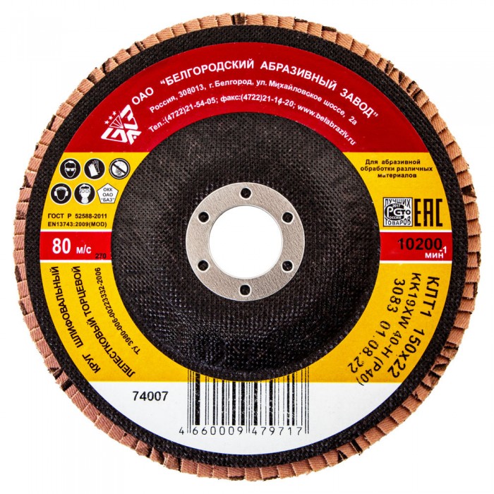 Круг лепестковый торцевой КЛТ-1, зернистость Р40(40Н) 150 х 22.2 мм, "БАЗ" (74007)