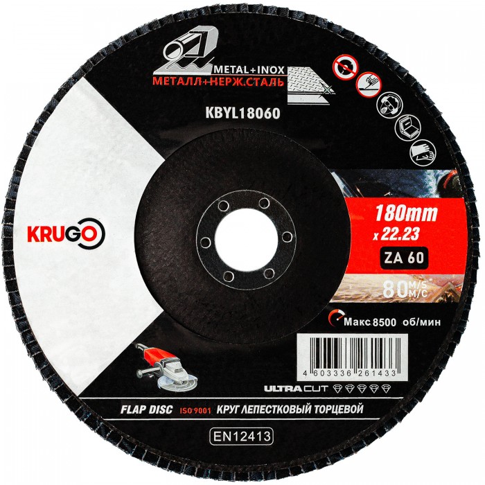 Круг лепестковый торцевой КЛТ KRUGO 180х22мм Р60 KBYL18060
