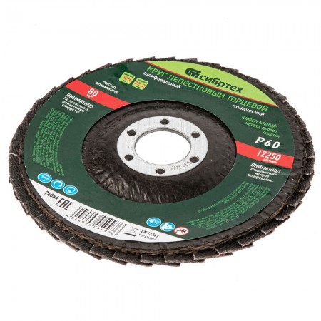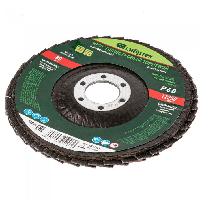 Круг лепестковый торцевой, конический, Р 60, 125 х 22.2 мм Сибртех (74084)