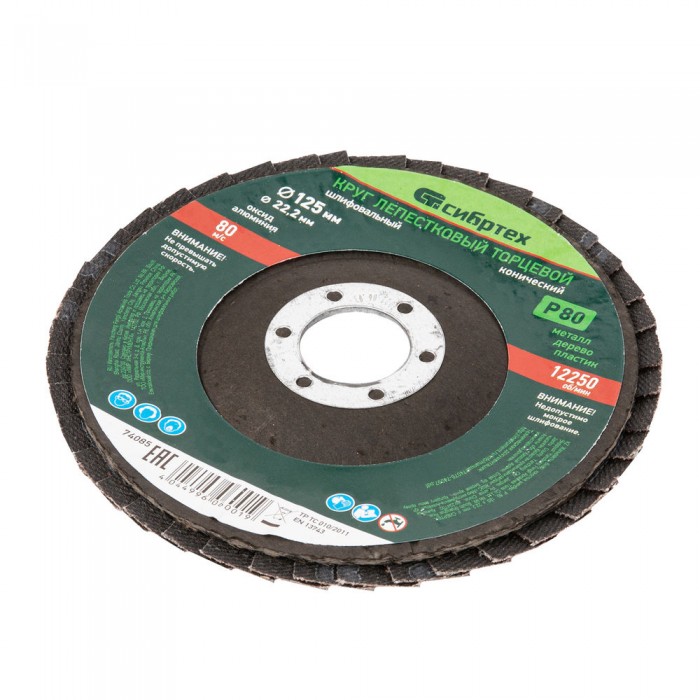 Круг лепестковый торцевой, конический, Р 80, 125 х 22.2 мм Сибртех (74085)