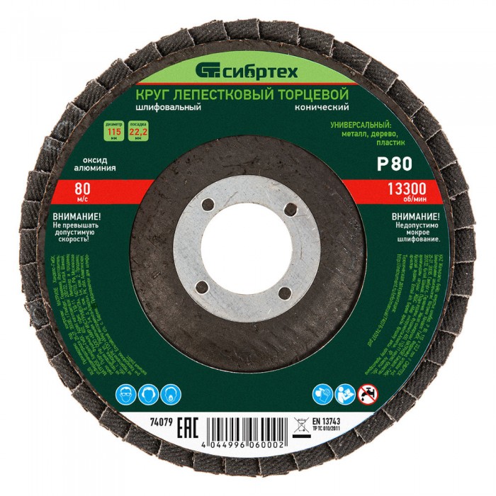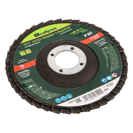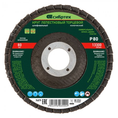 Круг лепестковый торцевой, конический, Р 80,115 х 22.2 мм Сибртех (74079)