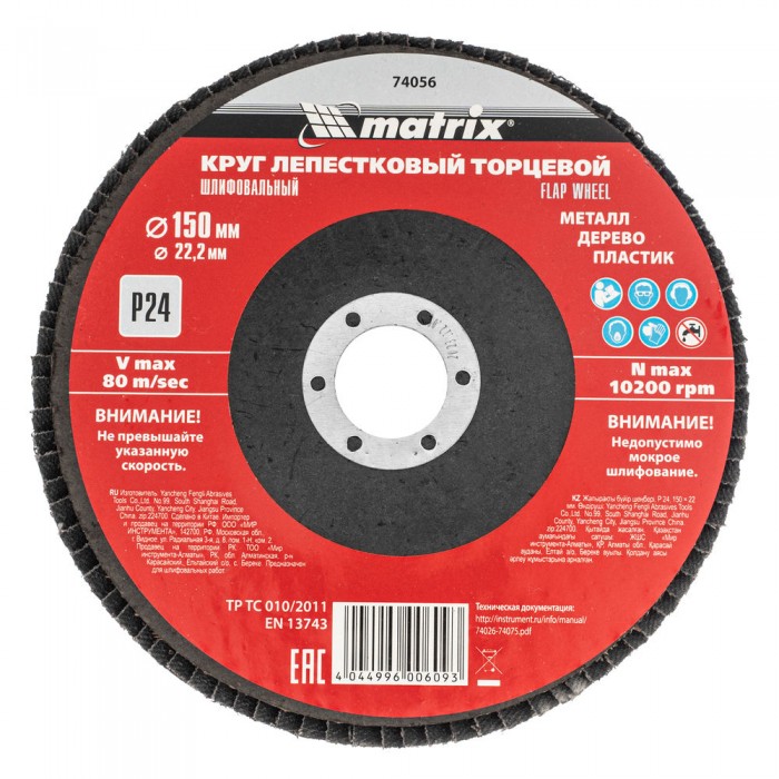 Круг лепестковый торцевой, P 24, 150 x 22.2 мм Matrix (74056)