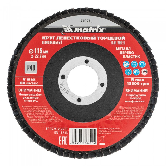 Круг лепестковый торцевой, P 40, 115 х 22.2 мм Matrix (74027)