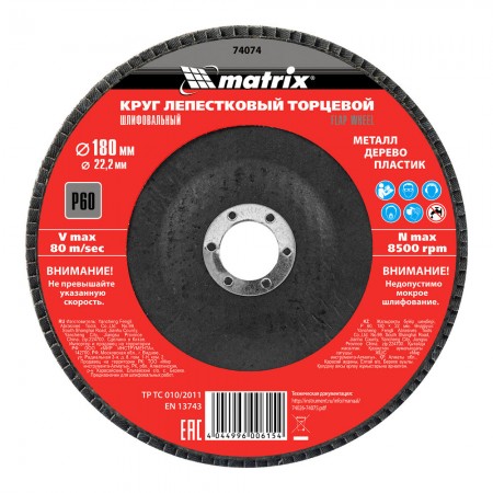Круг лепестковый торцевой, P 60, 180 х 22.2 мм Matrix (74074)