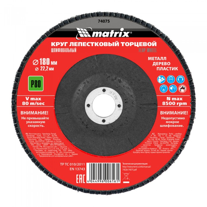Круг лепестковый торцевой, P 80, 180 х 22.2 мм Matrix (74075)