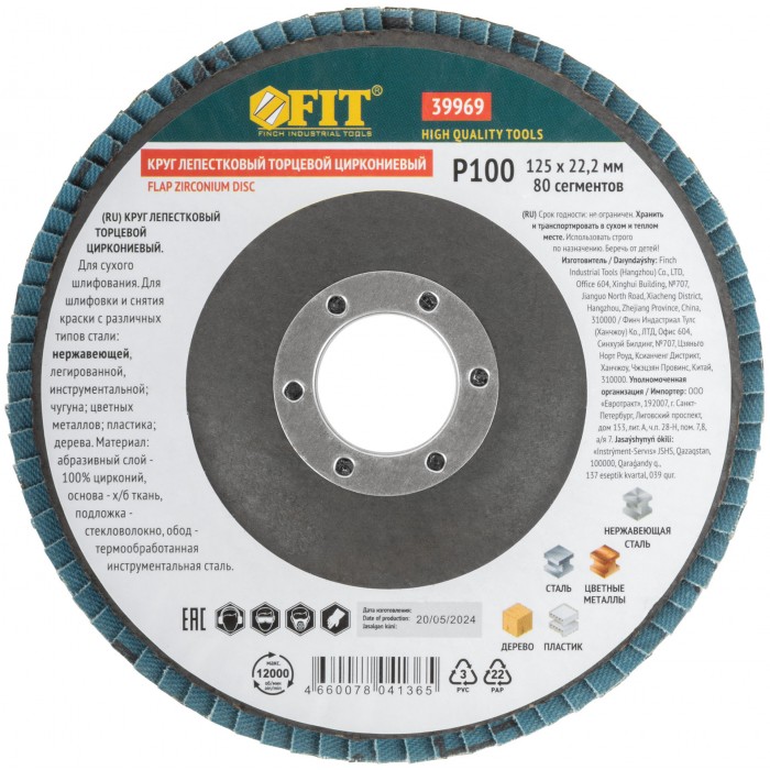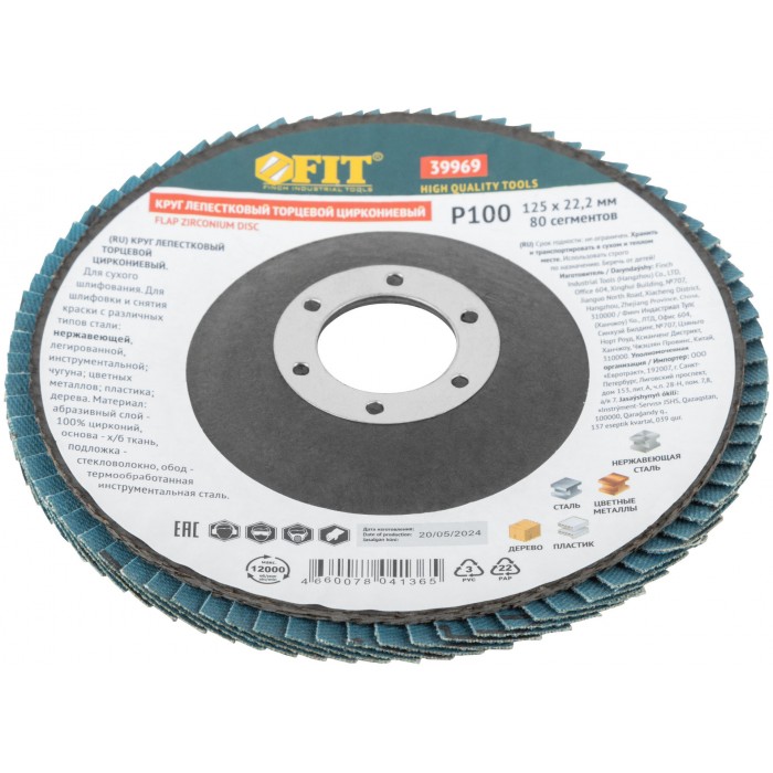 Круг лепестковый торцевой циркониевый, 125 мм Р 100 (39969)