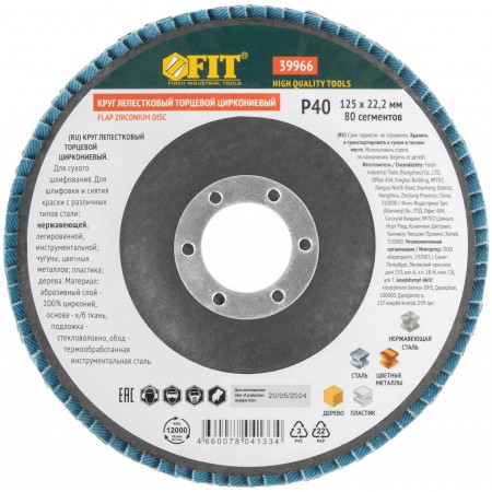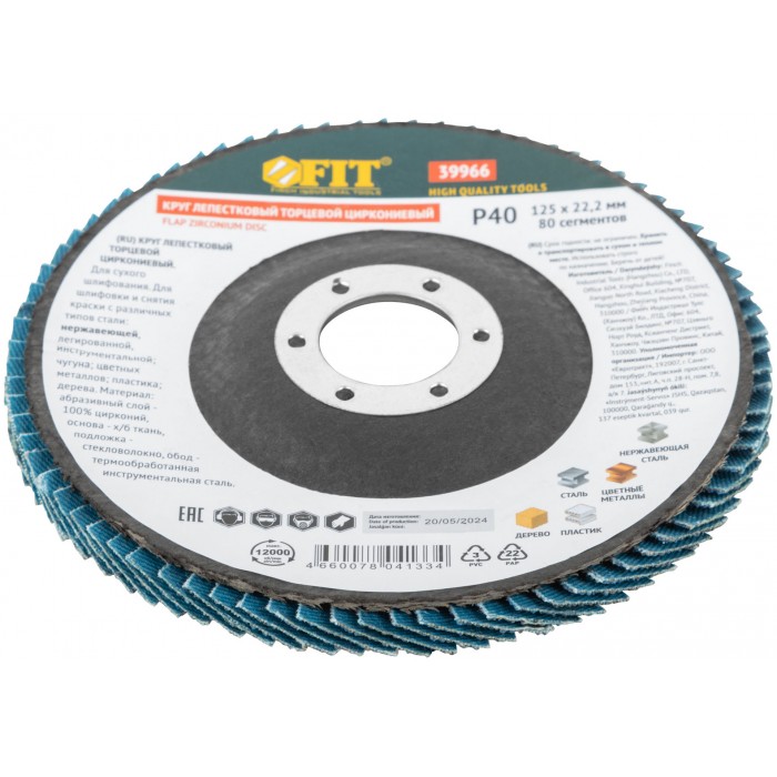 Круг лепестковый торцевой циркониевый, 125 мм Р 40 (39966)