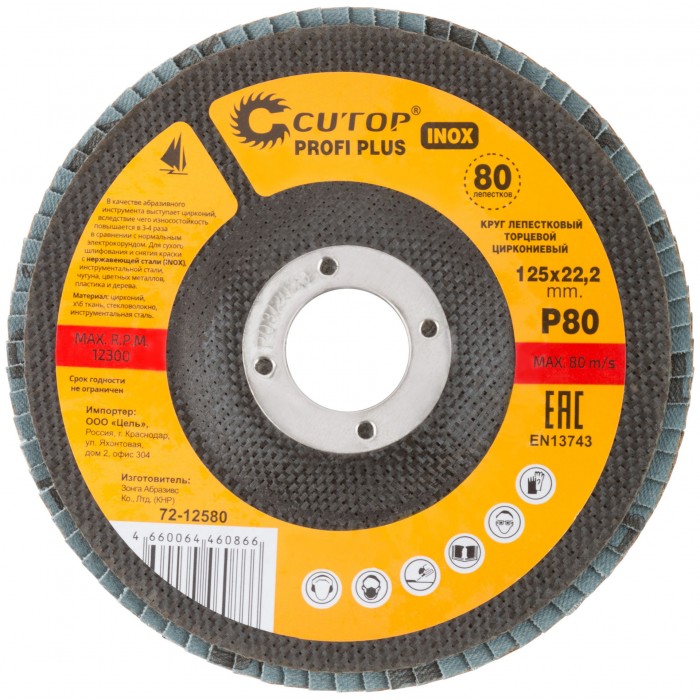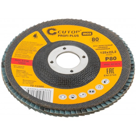 Круг лепестковый торцевой циркониевый Cutop Profi Plus (80 лепестков): 125 х 22,2 мм, Р80 (72-12580)