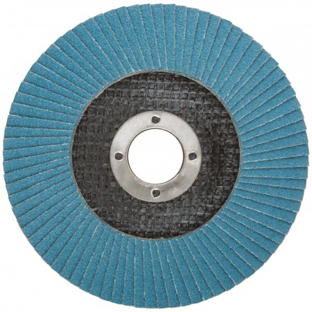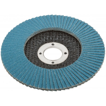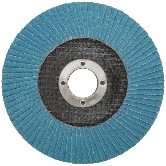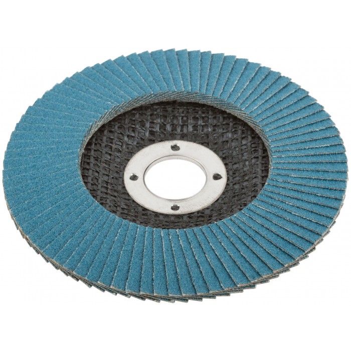 При изготовлении используется высококачественный гибкий абразивный материал состоящий из тканевой основы на которую нанесен слой циркониевого электрокорунда. Круги на основе циркониевого электрокорунда имеют высокую прочность, коэффициент шлифования на кругах данного типа выше в несколько раз, чем у кругов на основе нормального электрокорунда, что особенно эффективно при работе с особо твёрдыми сортами металла. Структура циркониевого электрокорунда даёт эффект самозатачивания, что также увеличивает ресурс использования. Наполняемость диска составляет 80 лепестков с углом наклона 10 градусов, это позволяет увеличить КПД круга и его стойкость к износу в несколько раз. Предназначен для обработки нержавеющей стали, металла, сварных швов, пластика, дерева. Для углошлифовальных машин. Посадочный диаметр 22,2мм.