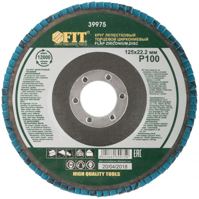 Круг лепестковый торцевой циркониевый плоский, 125 мм P 100 (39975)