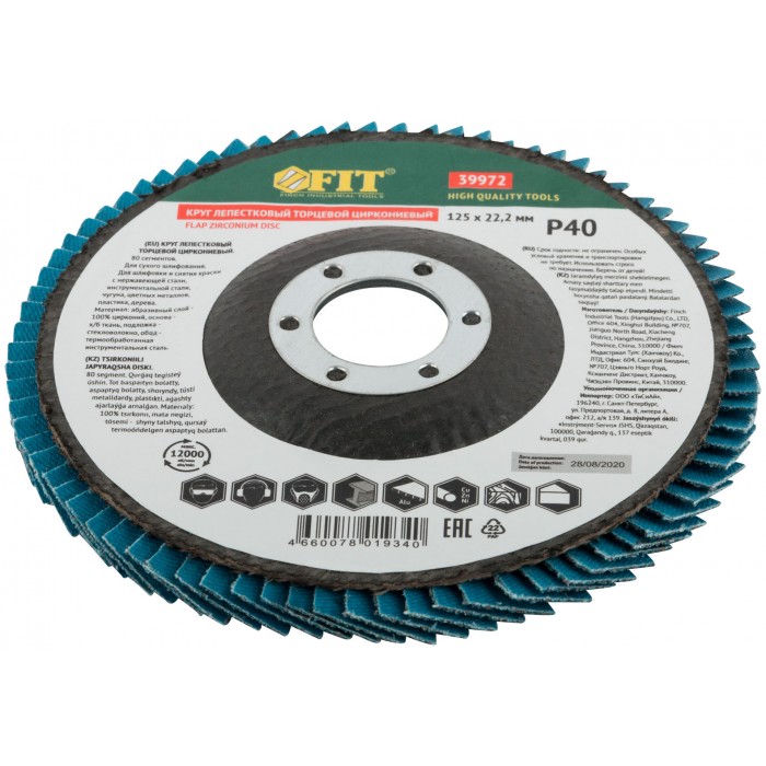 Круг лепестковый торцевой циркониевый плоский, 125 мм P 40 (39972)
