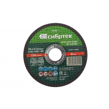 Круг отрезной по камню, 115 х 2,5 х 22,2 мм Сибртех (743657)