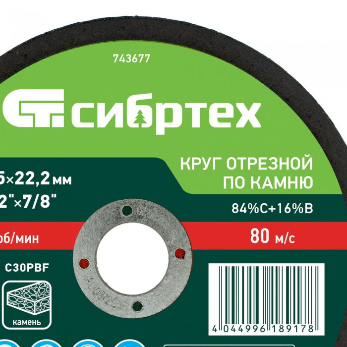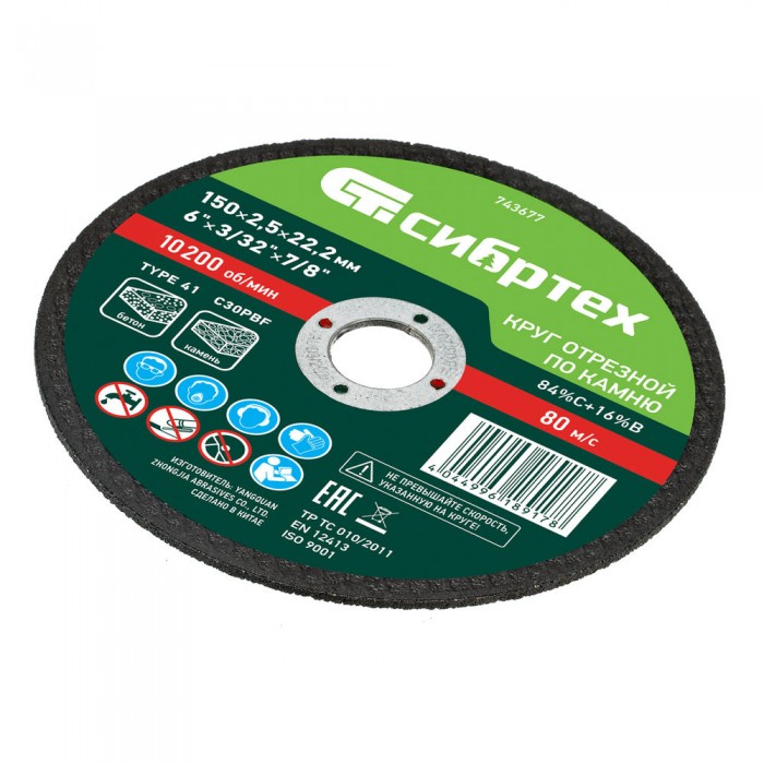 Круг отрезной по камню, 150 х 2,5 х 22,2 мм Сибртех (743677)