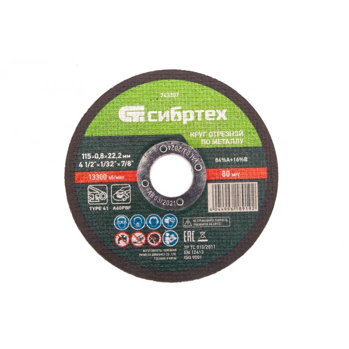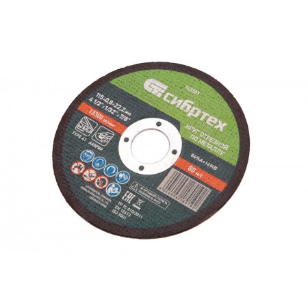 Круг отрезной по металлу, 115 х 0,8 х 22,2 мм Сибртех (743307)