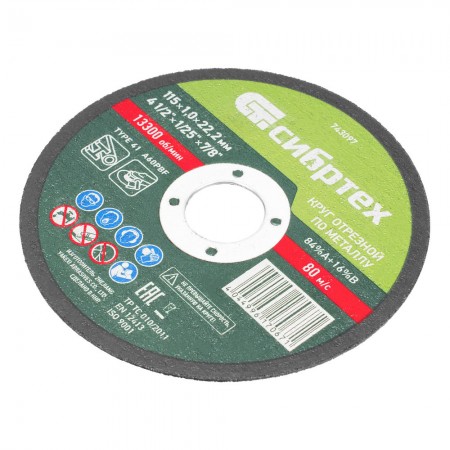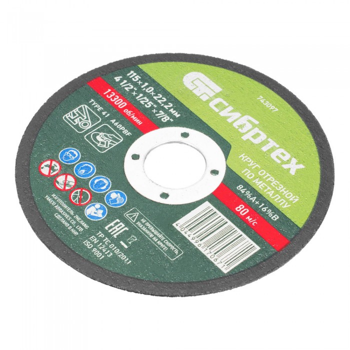 Круг отрезной по металлу, 115 х 1.0 х 22.2 мм, 84%A+16%B Сибртех (743097)