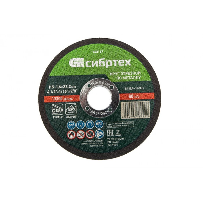 Круг отрезной по металлу, 115 х 1,6 х 22,2 мм Сибртех (743117)