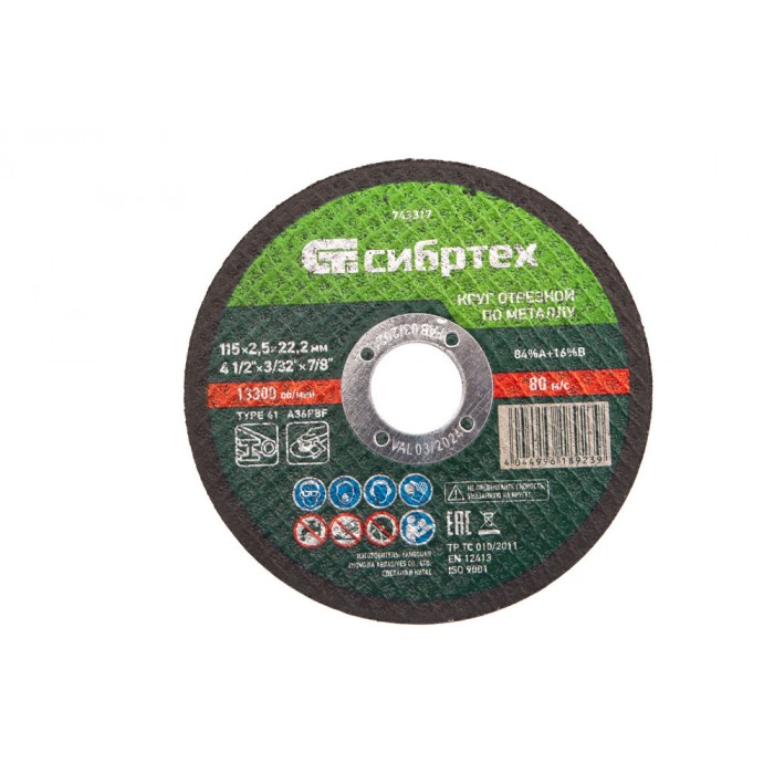 Круг отрезной по металлу, 115 х 2,5 х 22,2 мм Сибртех (743317)