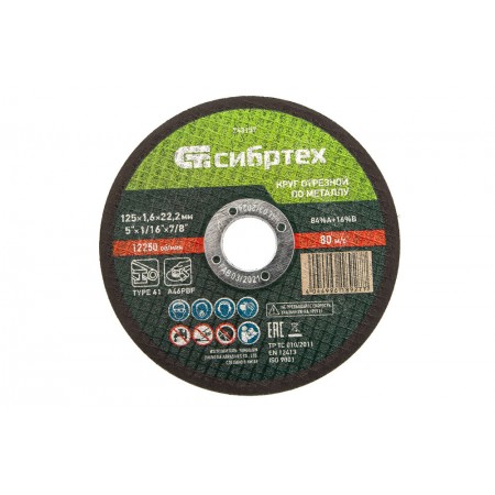 Круг отрезной по металлу, 125 х 1,6 х 22,2 мм Сибртех (743157)
