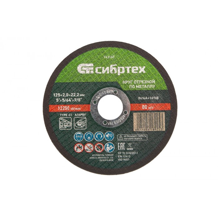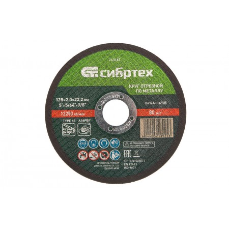 Круг отрезной по металлу, 125 х 2,0 х 22,2 мм Сибртех (743167)