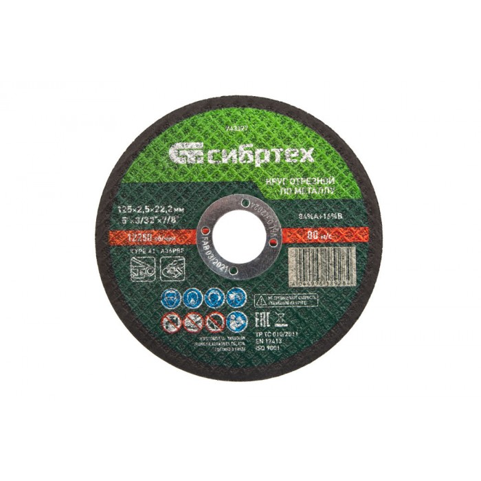 Круг отрезной по металлу, 125 х 2,5 х 22,2 мм Сибртех (743327)