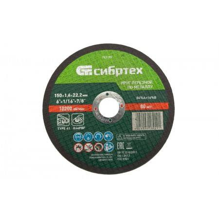 Круг отрезной по металлу, 150 х 1,6 х 22,2 мм Сибртех (743197)