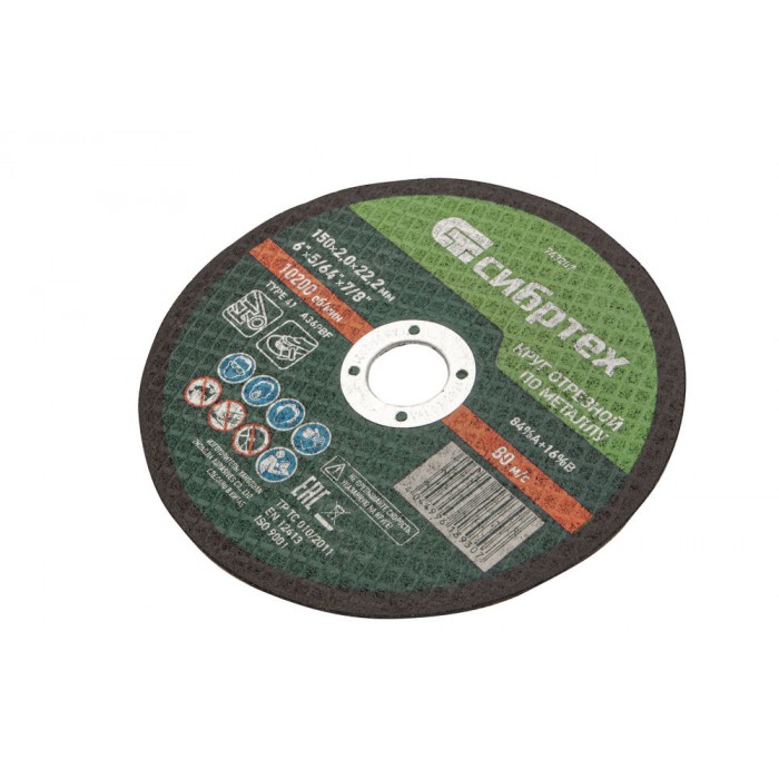 Круг отрезной по металлу, 150 х 2,0 х 22,2 мм Сибртех (743207)