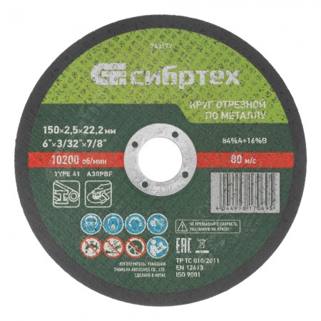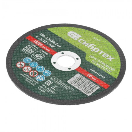 Круг отрезной по металлу, 150 х 2.5 х 22.2 мм, 84%A+16%B Сибртех (743177)