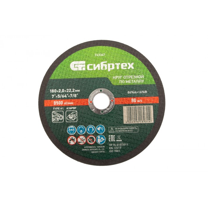 Круг отрезной по металлу, 180 х 2,0 х 22,2 мм Сибртех (743347)