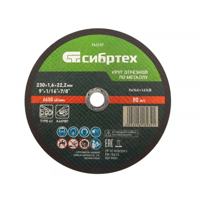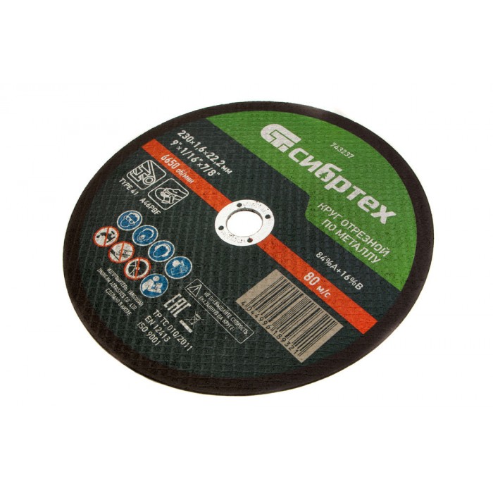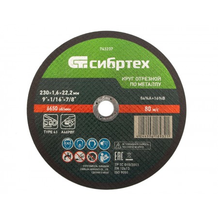 Круг отрезной по металлу, 230 х 1,6 х 22,2 мм Сибртех (743237)