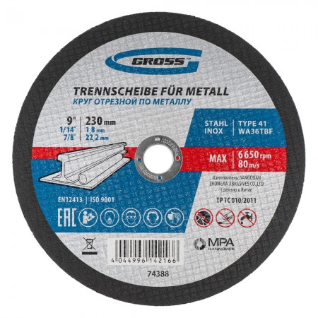 Круг отрезной по металлу, 230 х 1.8 х 22 мм Gross (74388)