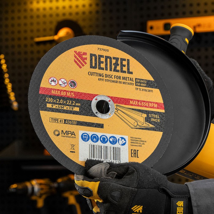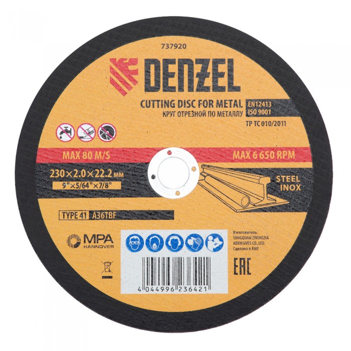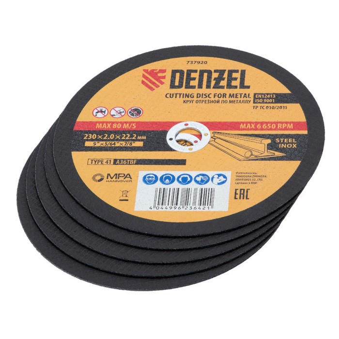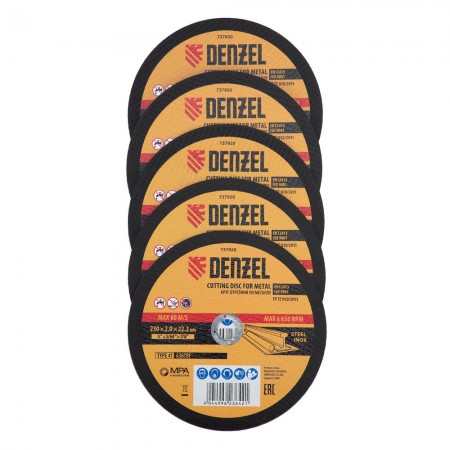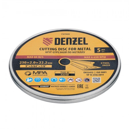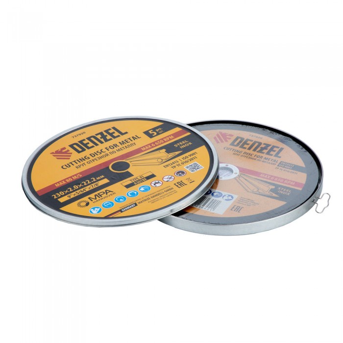 Круг отрезной по металлу, 230 х 2,0 х 22,2 мм, A36TBF, в метал.банке, 5 шт. Denzel (737920)